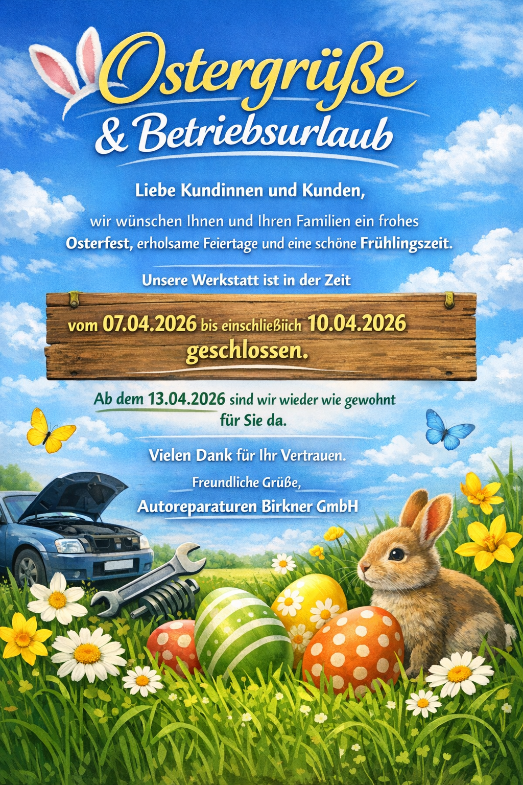 Unsere Werkstatt ist vom 07.04.2026 bis einschließlich 10.04.2026 geschlossen.